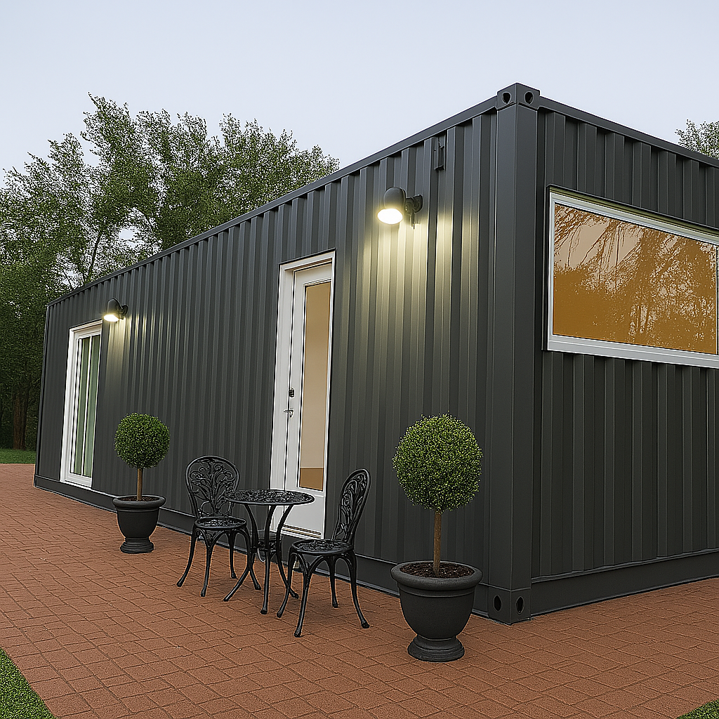 Place your container home on a beautiful patio and enjoy outdoor space with easy access to your home.